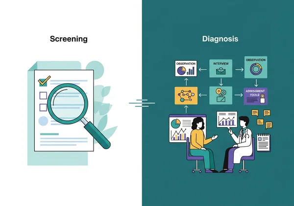 An online quiz is a self-reported screening tool that suggests the possibility of autistic traits. A professional evaluation is a multi-faceted diagnostic process conducted by a clinician, involving interviews, observation, and standardized tests to provide a formal, medically recognized diagnosis. A screening from a site like our autism quiz tool is a great way to decide if a full evaluation is worth pursuing.